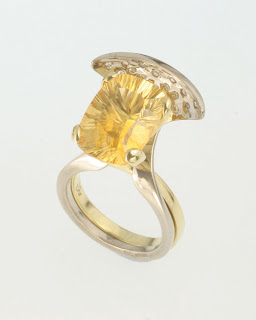 One of the things we have always been wondering about in designing rings is the point at which you draw the line between showing off the purity of the gemstone, having a clean contemporary shape, and adding embellishment or ornament to a piece to add character or atmosphere.The Embrace series gives us an opportunity to explore these ideas and return to common themes in very different pieces of jewellery. We like the way that they can look quite different from each other, but over time really form a body of work, pushing ideas of what works and what is possible.Some of these have been commissioned by our customers while others have begun purely as an exercise on our part and then found their owners afterwards. One thing they have in common is that they are usually a little more extravagant than the more regular commissions that we receive from people.Over the last 10 years we have made quite a few sets in this series and we will post the others as time goes by.With this set we wanted to have a centre stone that stood on its own and could be worn separately. The setting for this is very minimal and we really wanted the metal work to disappear and take a back seat to the gem itself. The idea then was that you would have other elements that could be worn in combination to further enhance, embellish or dress the ring up for how flamboyant you wanted to be on any particular occasion.The centre ring has a concave cut Citrine set in 18kt yellow gold. The concave faceting is really sumptuous and turns what would have been quite an ordinary stone into something really impressive, the way that it throws back so much light and colour.